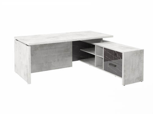 Стол с опорной тумбой FB-119R.GG (R) Хромикс белый/Камень Пьетра Гриджиа черный