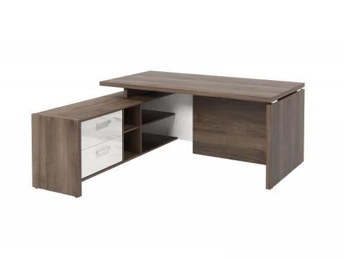 Столешница, бок стола и бок тумбы выполнены из ЛДСП толщиной 38 мм. Цвет - "Орех Пацифик Табак". Кромка 2 мм.