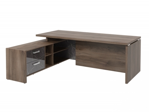 Столешница, бок стола и бок тумбы выполнены из ЛДСП толщиной 38 мм. Цвет - "Орех Пацифик Табак". Кромка 2 мм.